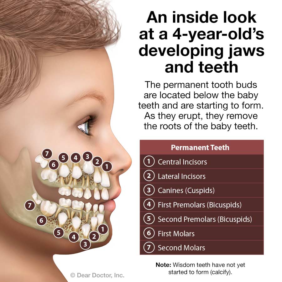 For one thing, primary teeth serve as guides for the eruption of permanent (adult) teeth, holding the space into which these new teeth will erupt. The crowns (tops) of the permanent teeth actually push against the roots of the baby teeth, causing them to resorb, or melt away. In this way, the adult teeth can take their proper place.